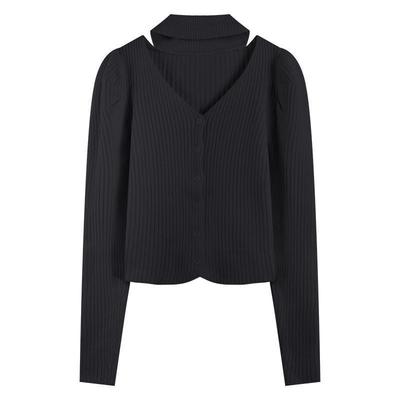 Cardigan scurt negru cu mâneci lungi, stil Y2K sexy hot girl european și american, top tricotat pentru femei cu simț de design