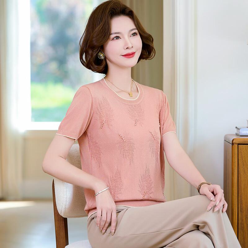 Wo Xue Petite Mom's Ice Silk Short-Sleeve Top