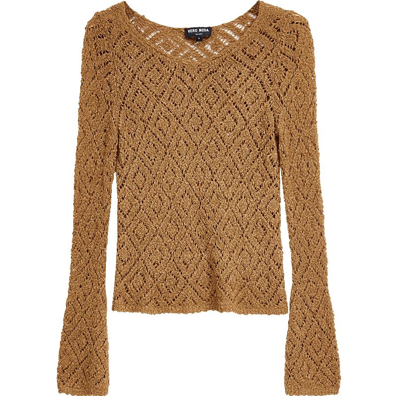 VEROMODA Women's Round Neck Flare Cuff Hollow Knit Sweater