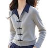 Demana Women's Autumn Elegant Colorblock Knit Top with Puff Sleeves