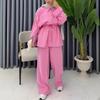 2025 Fall Women’s Draped Long Sleeve Shirt and High Waist Tie-Up Pants Set