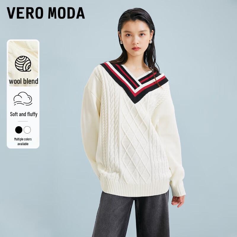 Vero Moda Women's Ribbed Color Block V-Neck Knit Sweater