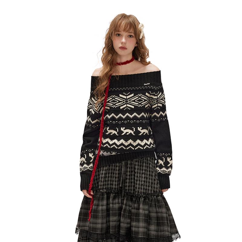 UNIFREE Fair Isle Off-Shoulder Loose Fit Sweater
