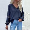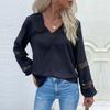 2022 Lace Patchwork Long Sleeve V-Neck Blouse - Women's Spring & Autumn Fashion