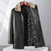 FIRS Men's Goose Down Lined Genuine Leather Jacket with Mink Collar