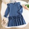 Rochie Fete Toamnă Nouă Stil Coreean Stil Occidental Dantelă Mânecă Lungă Dulce Fustă Flori Tridimensionale Rochie Prințesă