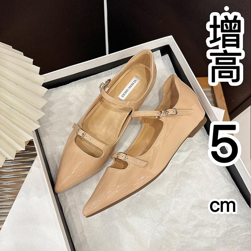French patent leather pointed single shoes women's 2025 spring and autumn new shallow mouth shoes temperament inner height increase 5cm flat bottom