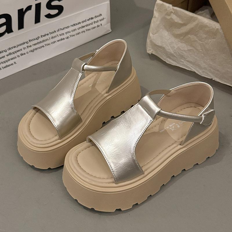 Hollow outer wear versatile French simple open-toed sandals women's 2025 summer thick-soled heightening Roman muffin beach shoes