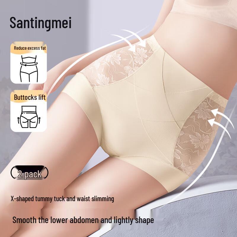 Tingmei Women's High-Waist Lace Tummy Control Briefs
