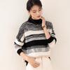 TUHUANG Women's Retro Striped Color Block Thickened Pure Wool Semi-High Neck Sweater