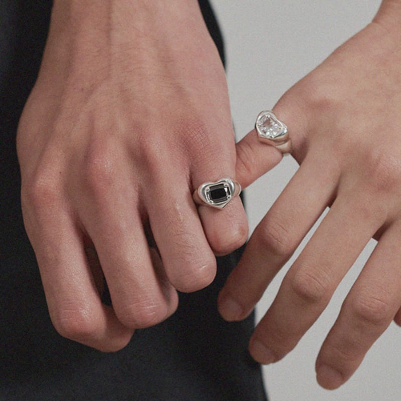 PICOMENT #006 Heart Square Cubic Zirconia Ring _ Black