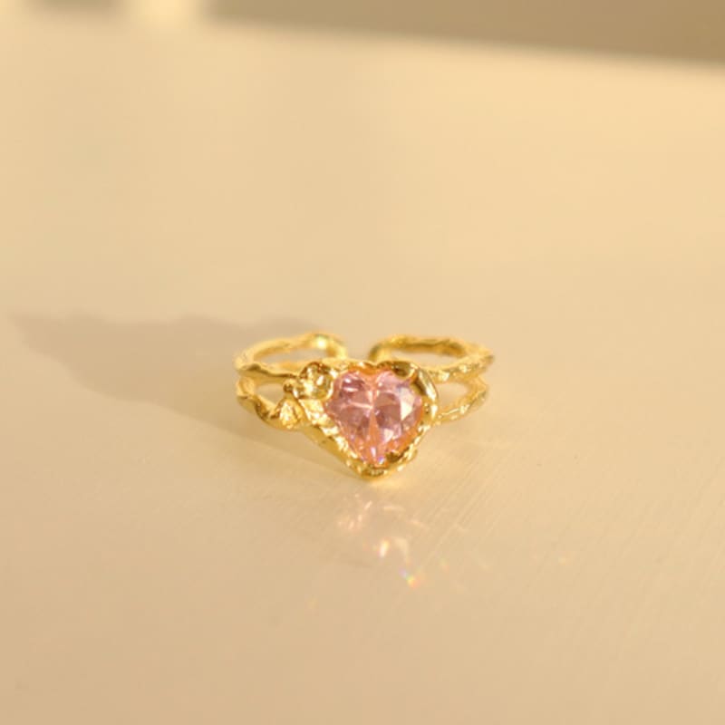 VINTAGEPINK Crumpled Ugly Pastel Pink Heart Ring