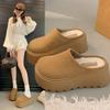 Leather Boken shoes women's autumn and winter thick-soled muffin fluffy slippers 2025 new one-pedal bag head half-drag cotton shoes