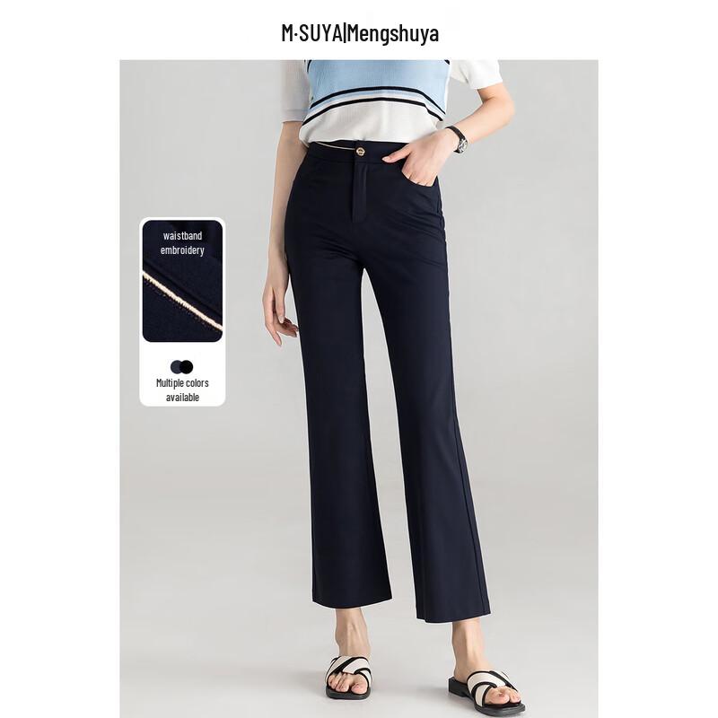 MengShuYa Women's High-Waist Anti-Wrinkle Cropped Flare Trousers
