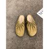 [Youshilai] Retro pleated gentle baotou half slippers women's 2025 spring new outer wear thick bottom one pedal