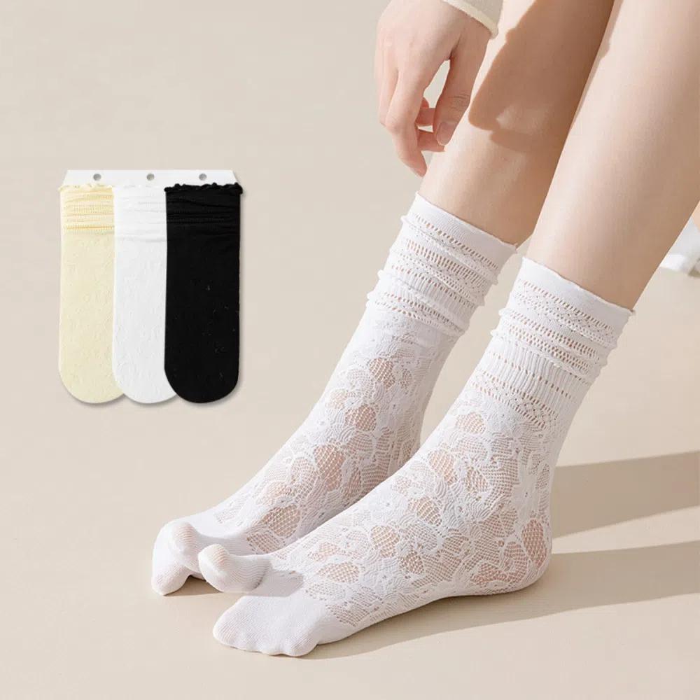 1Pairs Hollow Out Mesh Two-Toed Socks Lace High Tube Socks New Tabi Sox Women