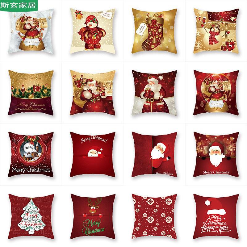 Cartoon Print Christmas Pillow Holiday Decoration Sofa Pillow Case Christmas Cushion