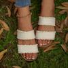 New Women Sandals Ladies Flat Roma Heels Knitted Summer Sandals Outside Cross Tied Leather Female Slides Woman Sandals