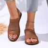 Comemore Women 2025 Summer New Soft Flat Bottom Mesh Sandals Round Head Hollow Casual Thick Bottom Solid Buckle Roman Sandales