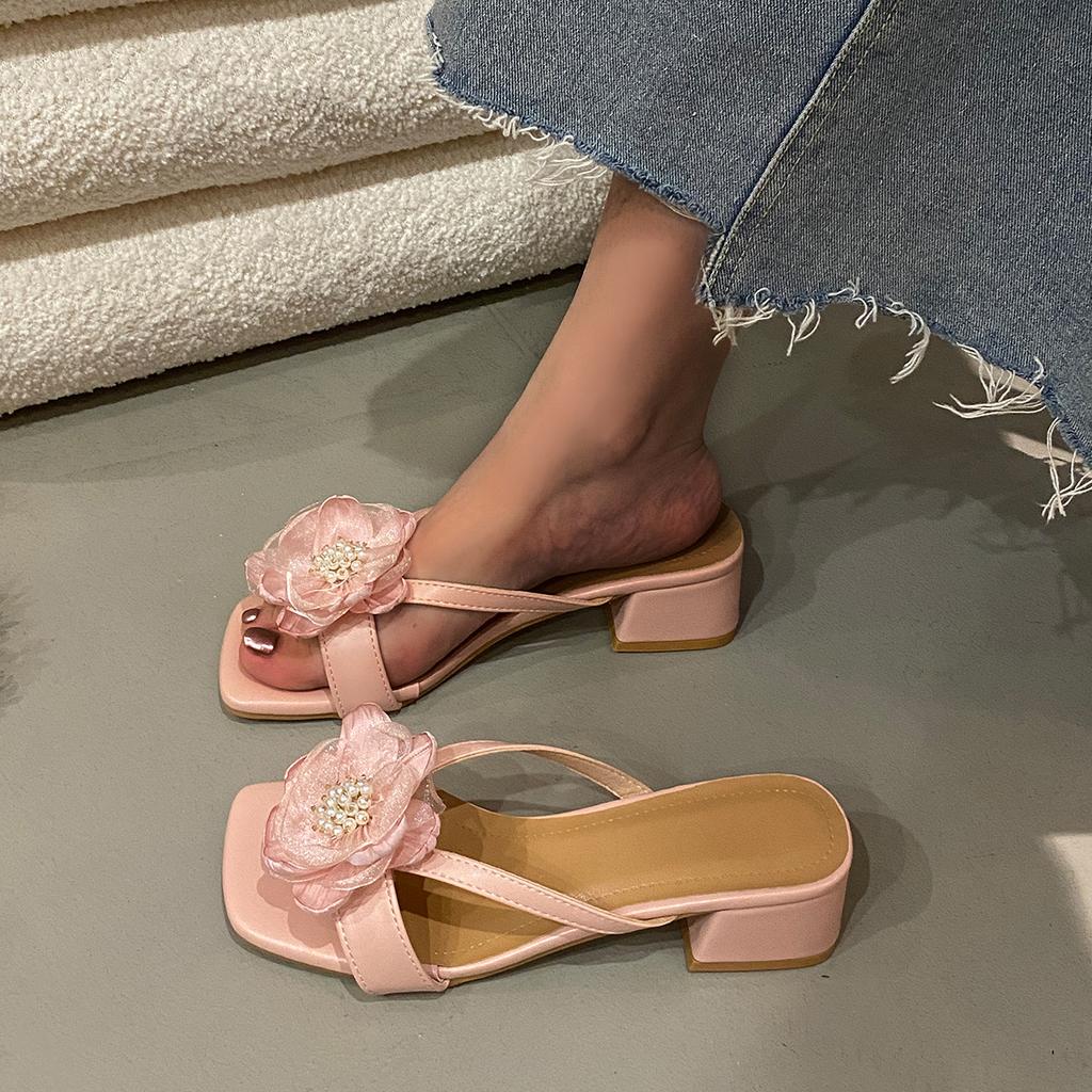 Women Sandals 2025 New Party Dress Heels Shoes Flowers Decoration Peep Toe Sandals Elegant High Heels Casual Outdoor Slippers