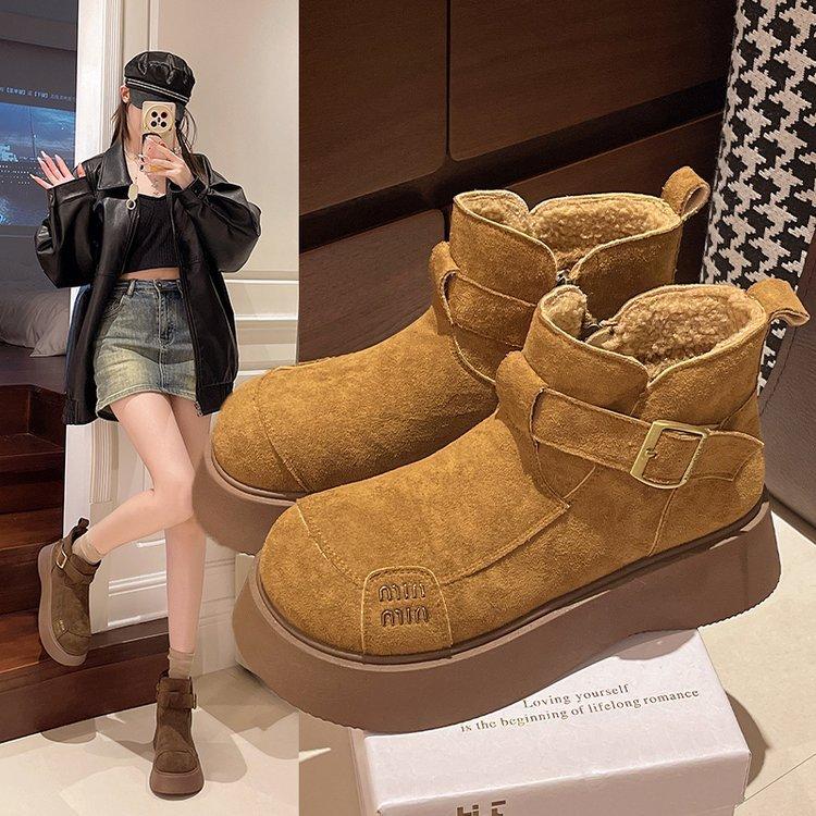 Ugly cute big-headed muffin thick-soled versatile Martin short boots for women 2025 autumn and winter new height-increasing velvet warm cotton shoes