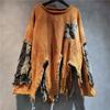 Pulover unic asimetric patchwork de toamnă/iarnă pentru femei, pulover tricotat retro cu mâneci lungi vopsit prin tehnica tie-dye
