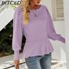 BITCED Autumn Winter Fitted Lantern Sleeve Knit Top Women's Solid Color Knit Sweater