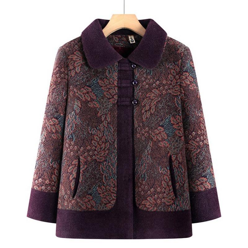 Grandma old lady on clothes fleece thickened woolen coat elderly women's clothing autumn and winter coat women