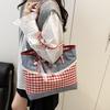 Retro Bow Lace Shoulder Bag Leisure Grid Large capacity Handbag Underarm Bags Commuting Tote Bags College students Schoolbag