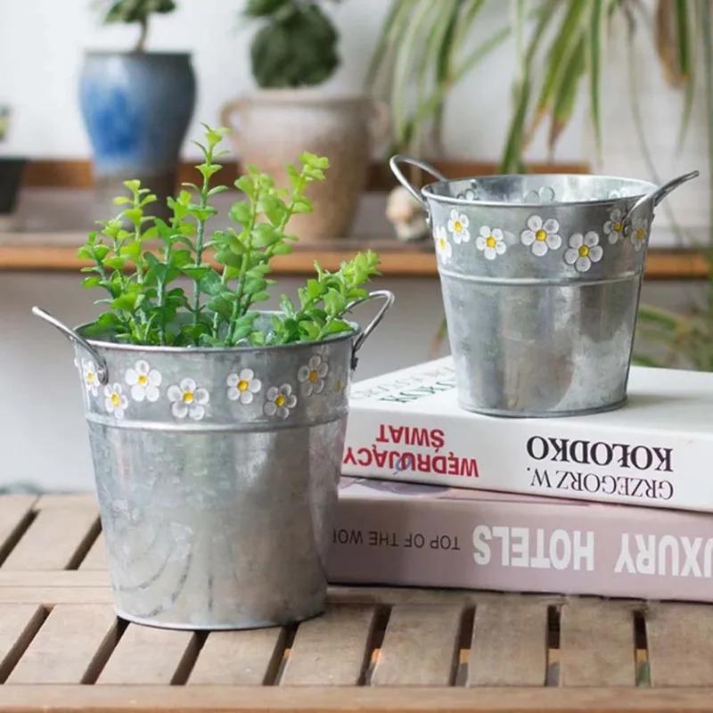 Embossed Vintage Iron Flower Pot - Desktop Flowers Vase, Plant Hanging Balcony Bucket, Garden Decorations Bonsai Pot