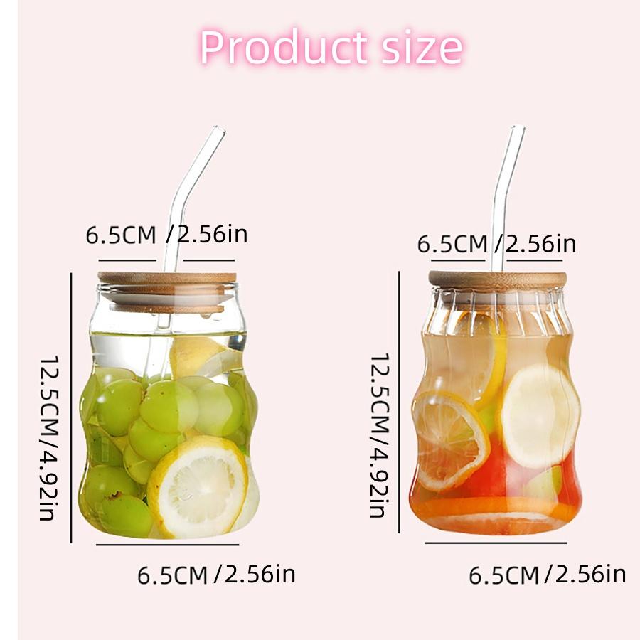 Drinking Glasses with Bamboo Lids and Glass Straw 15oz Glassware Set Glass Tumbler for Iced Coffee Juice Drink Milk