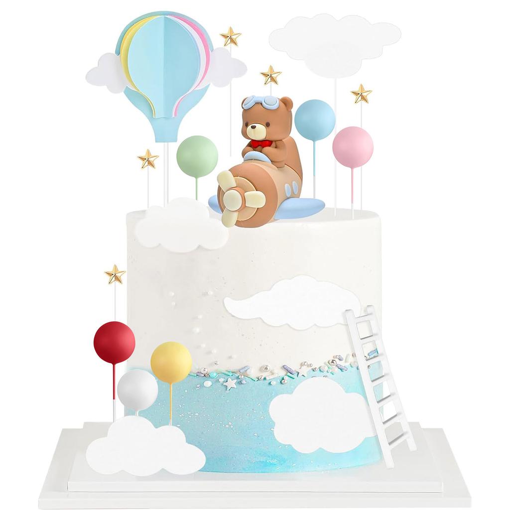 20pcs Airplane Cake Toppers with Bear Pilot Figurines Hot Air Balloon Colorful Balls for Themed Baby Shower Birthday Party Decor