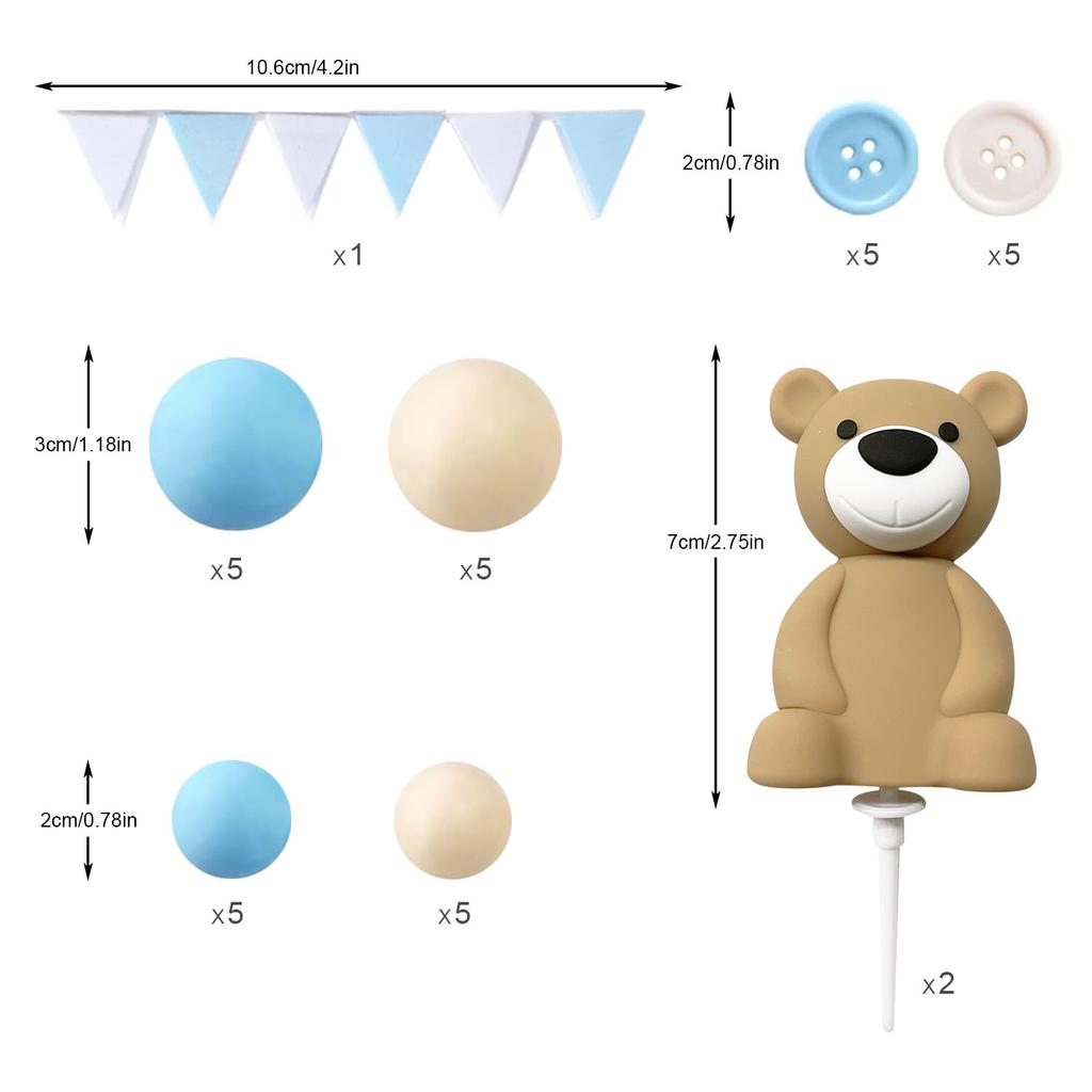 33Pcs Balls Cake Decorations 3D Bear Balls Cake Toppers for Boy Girl Baby Shower Birthday Gender Reveal Wedding Party Supplies