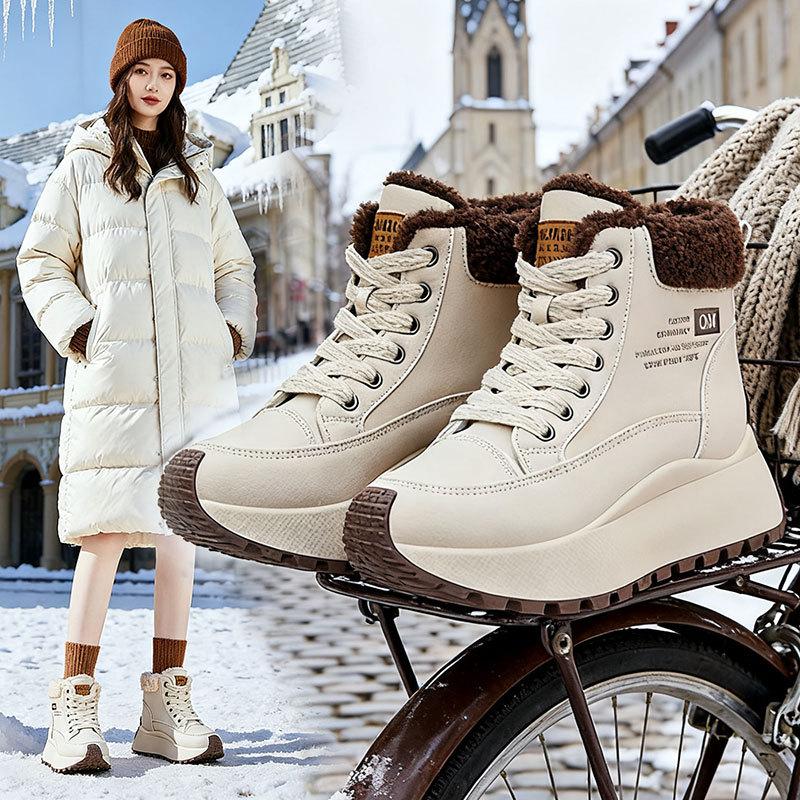 Pantofi cu talpă groasă cu gleznă înaltă pentru femei, cizme de zăpadă groase cu lână, pantofi noi de iarnă din bumbac pufos, pantofi sport calzi și cu talpă înaltă