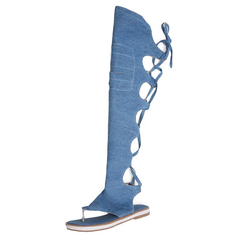 Cool boots large size flat denim fabric sandals European and American