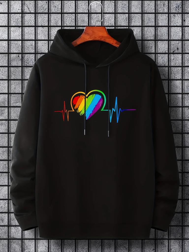 2025 Rainbow Heartprint 2D Hoodie Men's Casual Pattern Long Sleeve Hoodie