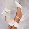 Pantofi cu toc ascuțit, cu perle și bareta la gleznă, pentru femei, cu toc înalt, din satin alb și bowknot, pentru banchet și petrecere, eleganti, cu toc stiletto