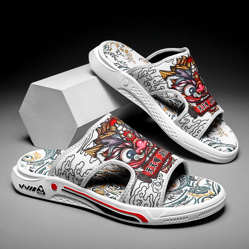 Fashion CYYTL Mens Slippers Printed Casual Summer Sandals Leather Fashion Outdoor Beach Slides Male Shoes Platform Fisherman Flip-Flops