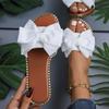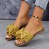 New flat-bottomed rhinestone bow one-word slippers for women to wear solid color light cloth cool slippers 2025