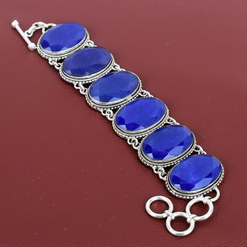 Faceted Blue Sapphire Bracelet 925 Sterling Silver Bracelet Handmade Jewelry Adjustable Chain Bracelet Gemstone Vintage Jewelry Wedding Gift