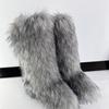 Cizme Pufoase Lungi Înalte de Iarnă Imitație Blană de Vulpe Pufoasă Cizme de Zăpadă pentru Bărbați și Femei Iarnă Mărimi Mari Cizme Peste Genunchi cu Blană