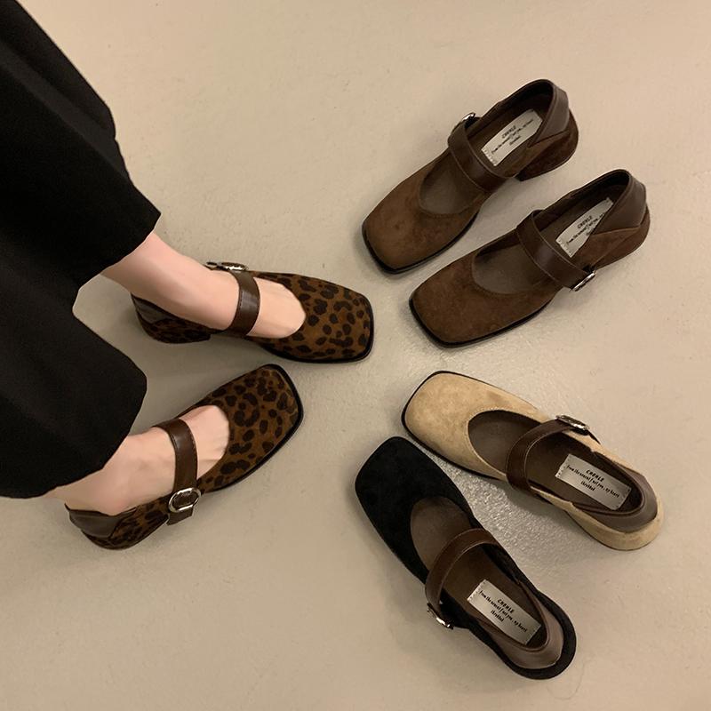 Fashion Vintage Square Toe Thick Heel Women Mary Jane Shoes Street Style Cosy Leopard Print Party Dress Female Pumps New Spring Autumn