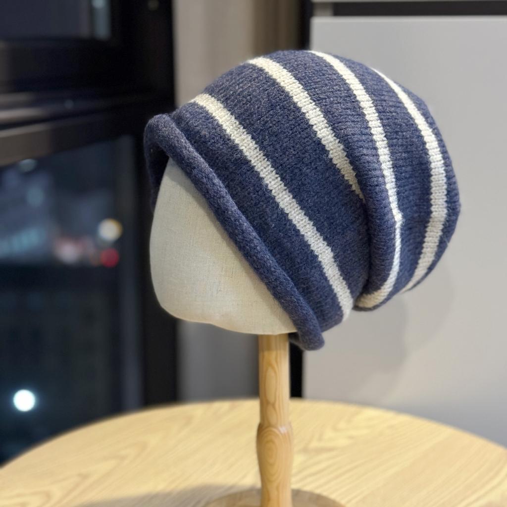 Autumn and Winter Warm Knitted Hat Fashionable Striped Woolen Hat Casual Face Showing Small Big Head Circumference Pullover Hat