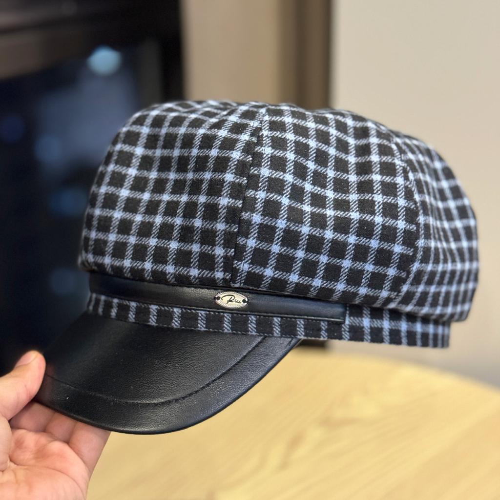 Korean Version of Retro Plaid Octagonal Hat for Women in Spring and Autumn Versatile Casual Face-showing Newsboy Hat Literary Young Painter Hat