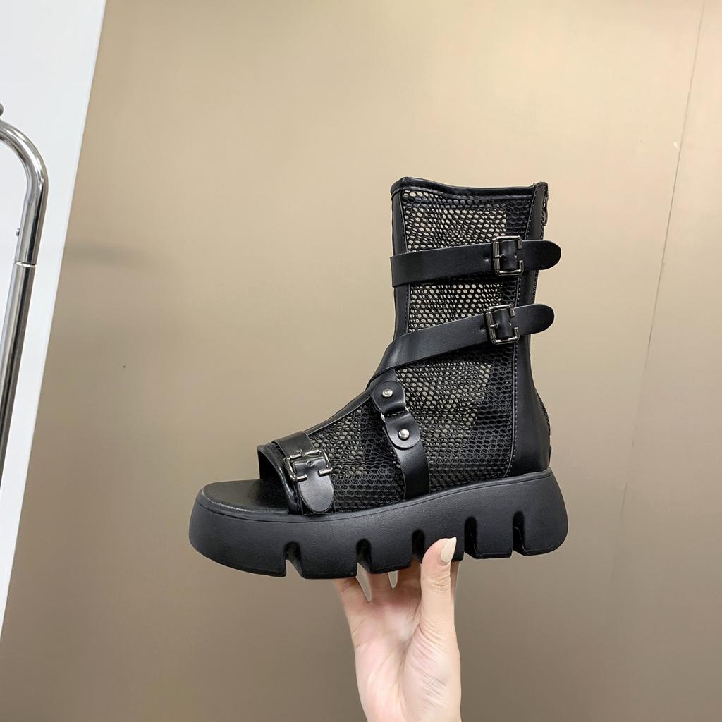 Fashion Women's Cool Boots Mesh Breathable Hollow Out Boots Fashion Middle Tube Platform Sandals Summer Peep Toe Women Roman Cool Boots
