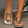 Fashion Women Slippers Summer Beach Flip Flops Fashion Metal Slippers Luxury Flats Sandals Casual Slip on Shoes 2024 New Slides Women