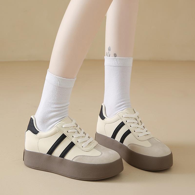 7Cm breathable German training shoes women's 2025 spring flat-bottomed lace-up versatile board shoes sports little white shoes breathable increase