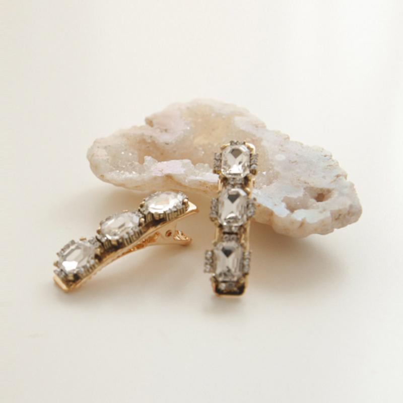 J.Lauren White Cubic Rectangular Point Mini Hair Claw Clip H0851