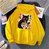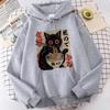 Women Japanese Black Cat Ramen Hoodies Cute Graphic Sweatshirts Funny Cat Eating Ramen Hooded Printing Long Sleeve Vintage