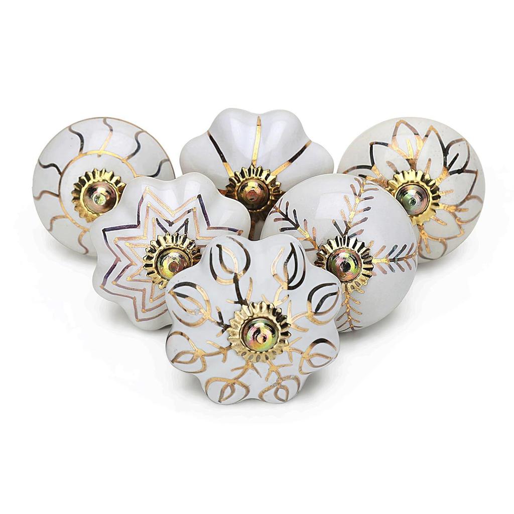 SET DE 6 : 6 buc asortate butoane ceramice vintage aurii de 2,5 inch înălțime și 1,5 inch diametru